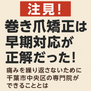 巻き爪は放置すると、症状が悪化し、化膿や激しい痛みを引き起こすことがあります。軽度のうちに治療を受けることで、重度の巻き爪になるのを防ぐことができます。千葉市【巻き爪じゅん】では巻き爪初回無料相談もおこなっていますのでお気軽にお声掛けください!