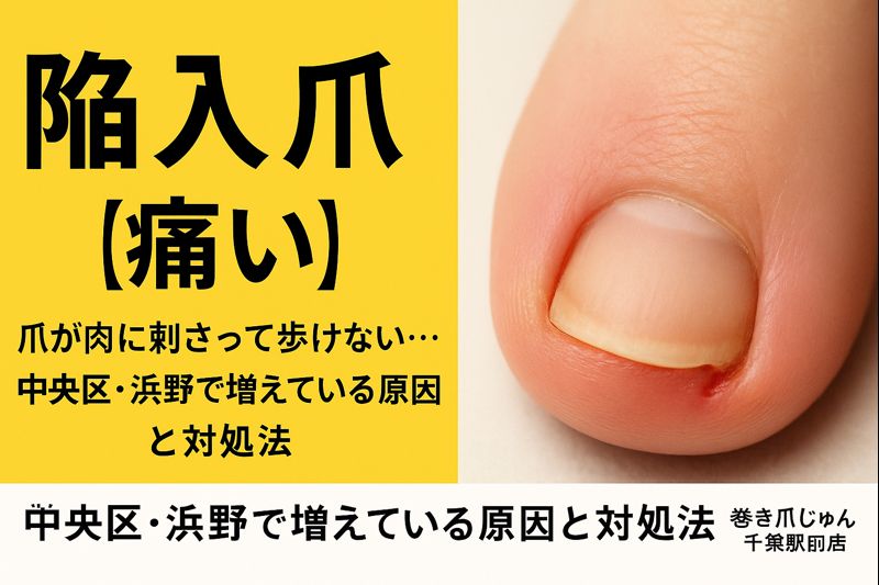 著者:巻き爪じゅん 木原一真 千葉駅前店では、中央区や浜野で増えている陥入爪・巻き爪による「痛い」症状に対し、専門的な矯正で改善を目指しています。爪が肉に刺さって歩けない陥入爪は放置せず、千葉駅前店で原因から見直すことで痛い状態の改善が可... -