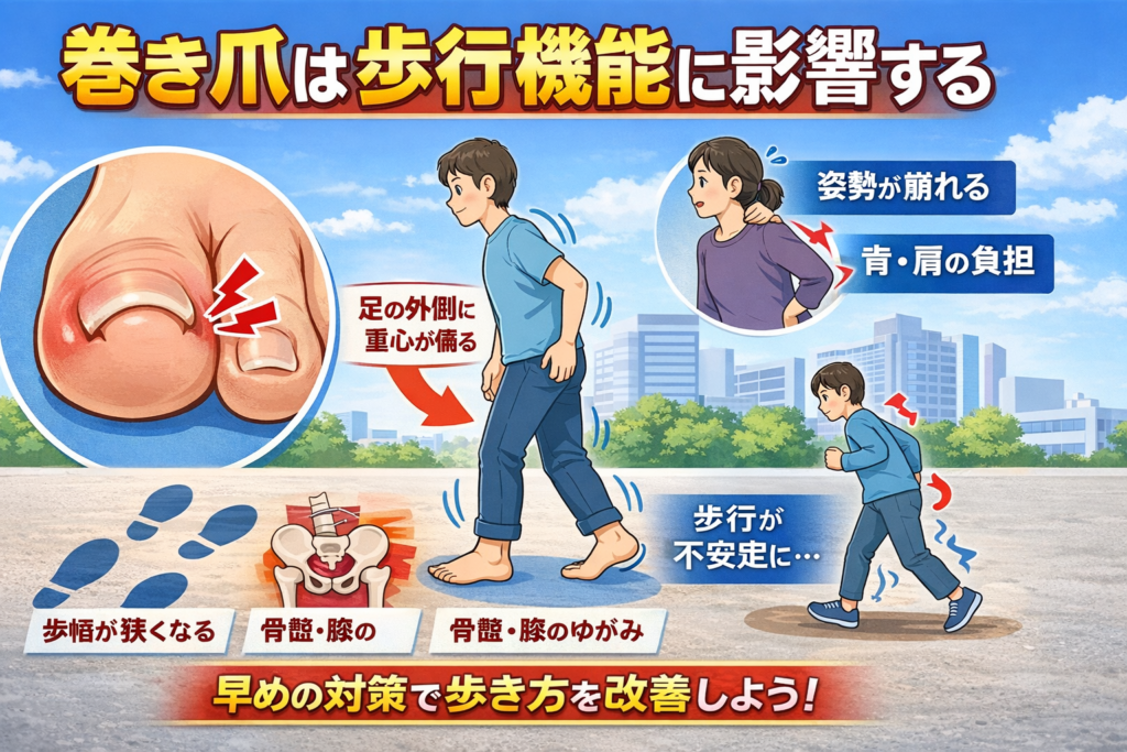 巻き爪放置で歩行不安定と頭部不調