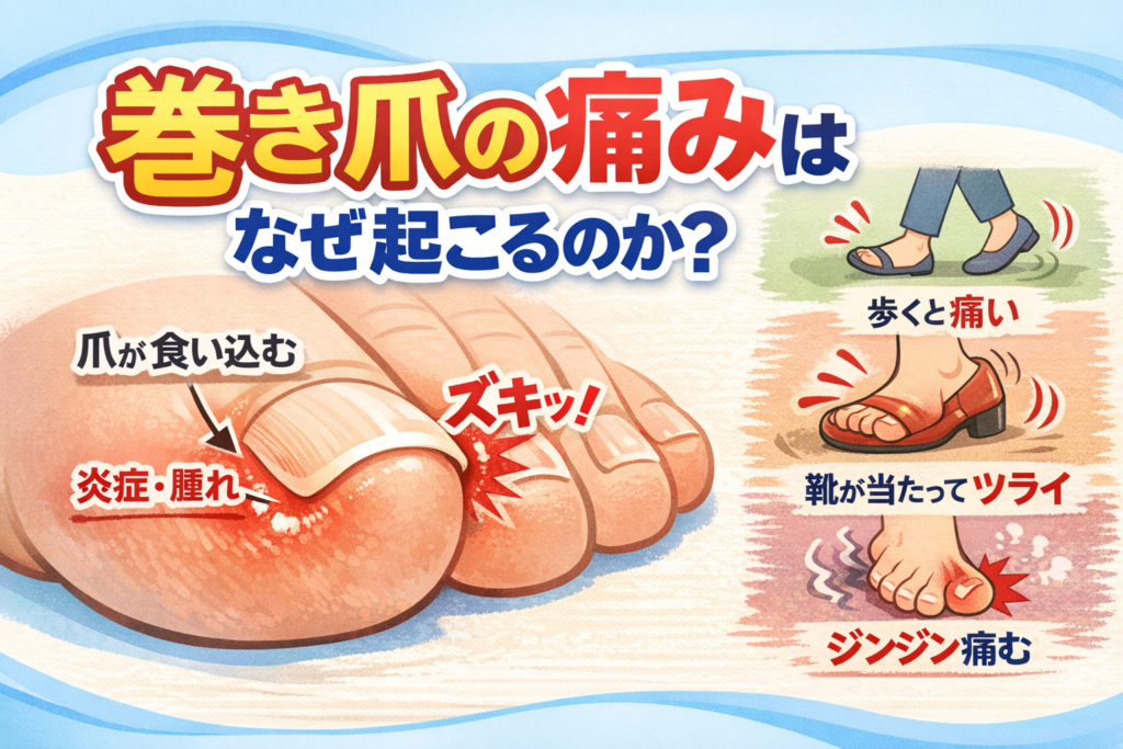 著者:巻き爪じゅん 木原一真 千葉市中央区で巻き爪による痛みにお悩みの方へ。巻き爪じゅん千葉駅前店では、独自のオーダーメイド施術により、1回の施術でも痛みの軽減と見た目の改善を実現しています。本記事では、巻き爪が痛む原因から、当店の施術方...